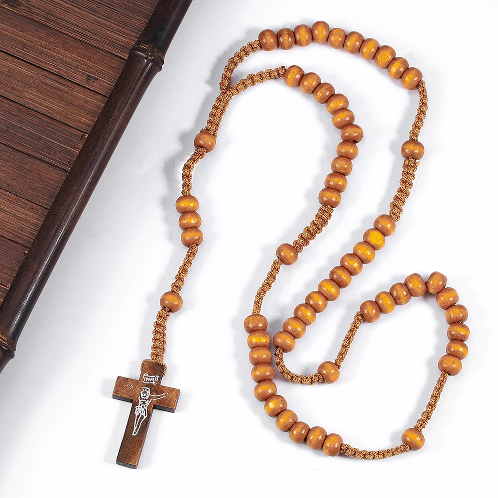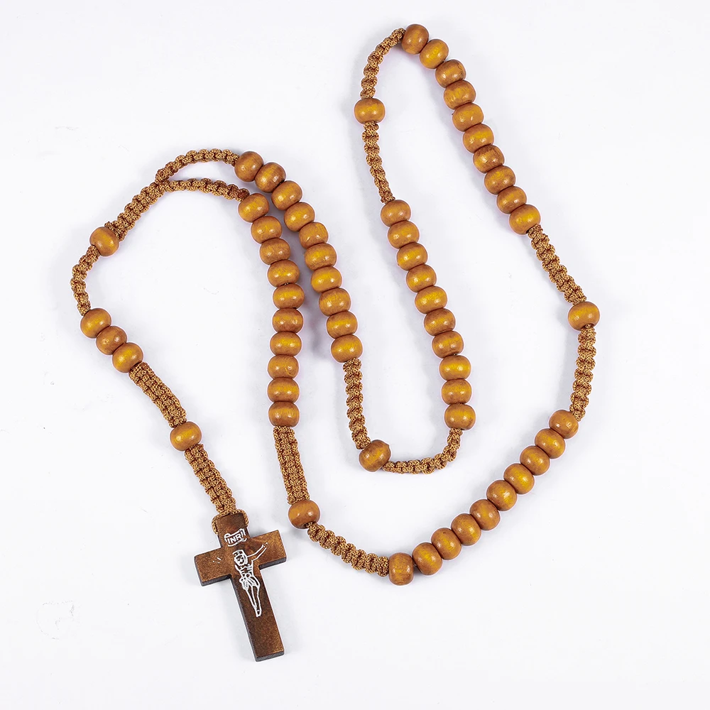 Handcrafted with Care Our artisans take great care in creating each piece. The rosary is meticulously hand-woven, showcasing a durable, braided cord that holds the beads securely. The beads themselves are made from natural wood, with a smooth, polished finish that feels comfortable against the skin. They come in a variety of natural tones, from a deep, rich brown to a lighter, honey-colored wood, giving each rosary a unique character.